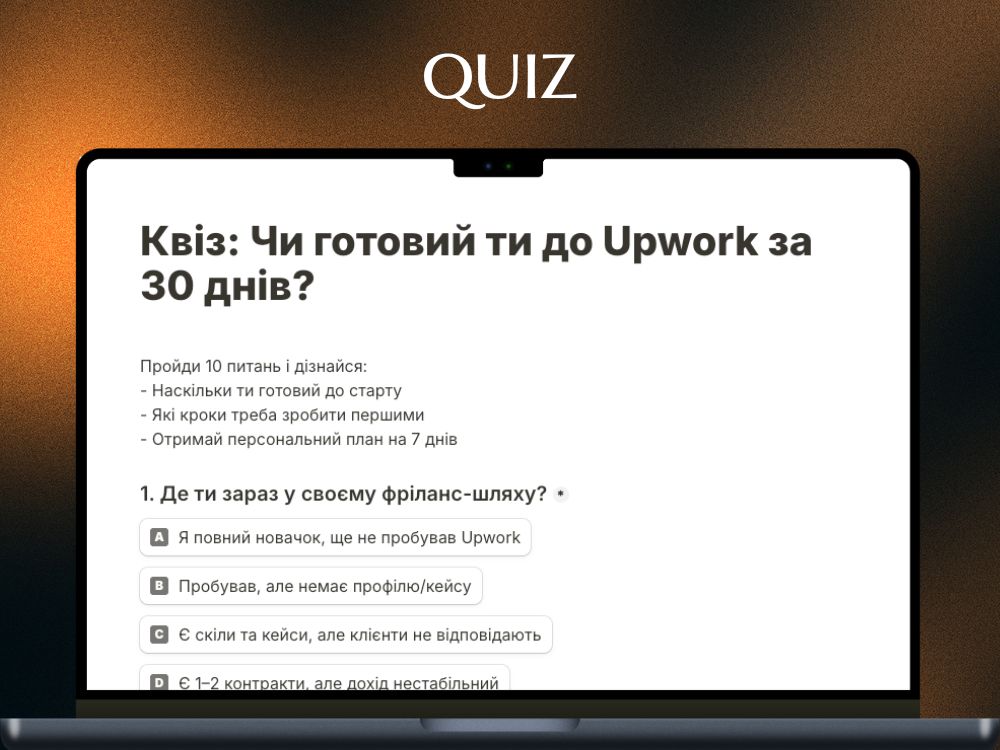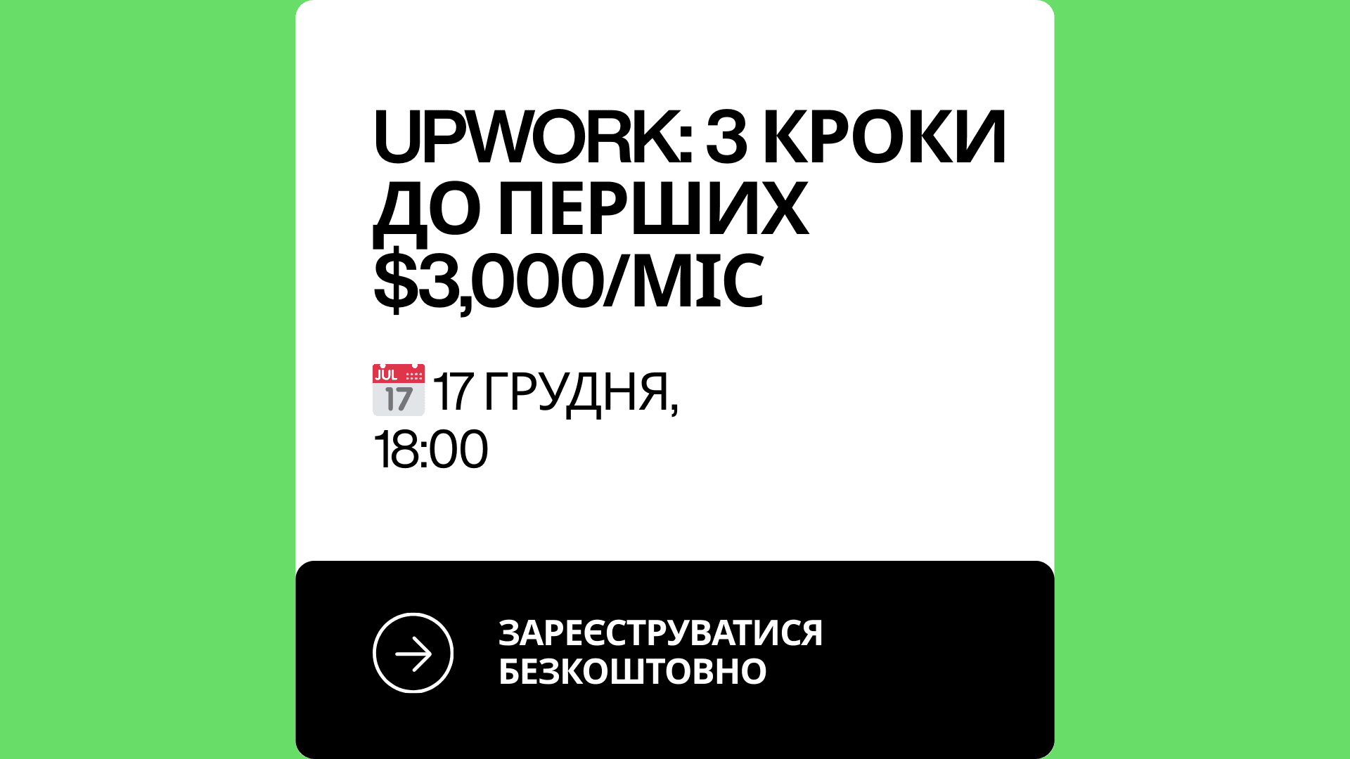 Практичні курси, шаблони та чек-листи без «води»: профіль, портфоліо, proposals, дзвінок. Допоможемо взяти перший контракт за 30 днів і вийти на стабільні $3–5k/міс.