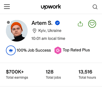 ❌ ДО КУРСУ: • Витрачав по 400 коннектів кожен місяць нестабільно • Отримував мало клієнтів • Витрачав по 2 години в день ✅ ПІСЛЯ КУРСУ: • В перший місяць отримав 10 проектів • На пошук проектів витрачає 2 години в тиждень • Зараз: $15,800/міс стабільно 💬 "В мене були скілли, досвід більше 6 років, але на Апворку я не розумів як знайти стабільно проекти. Інвестував пару місяців на курс і 250євро які окупились за 5 годин роботи. Найкраще моє рішення за останні роки."